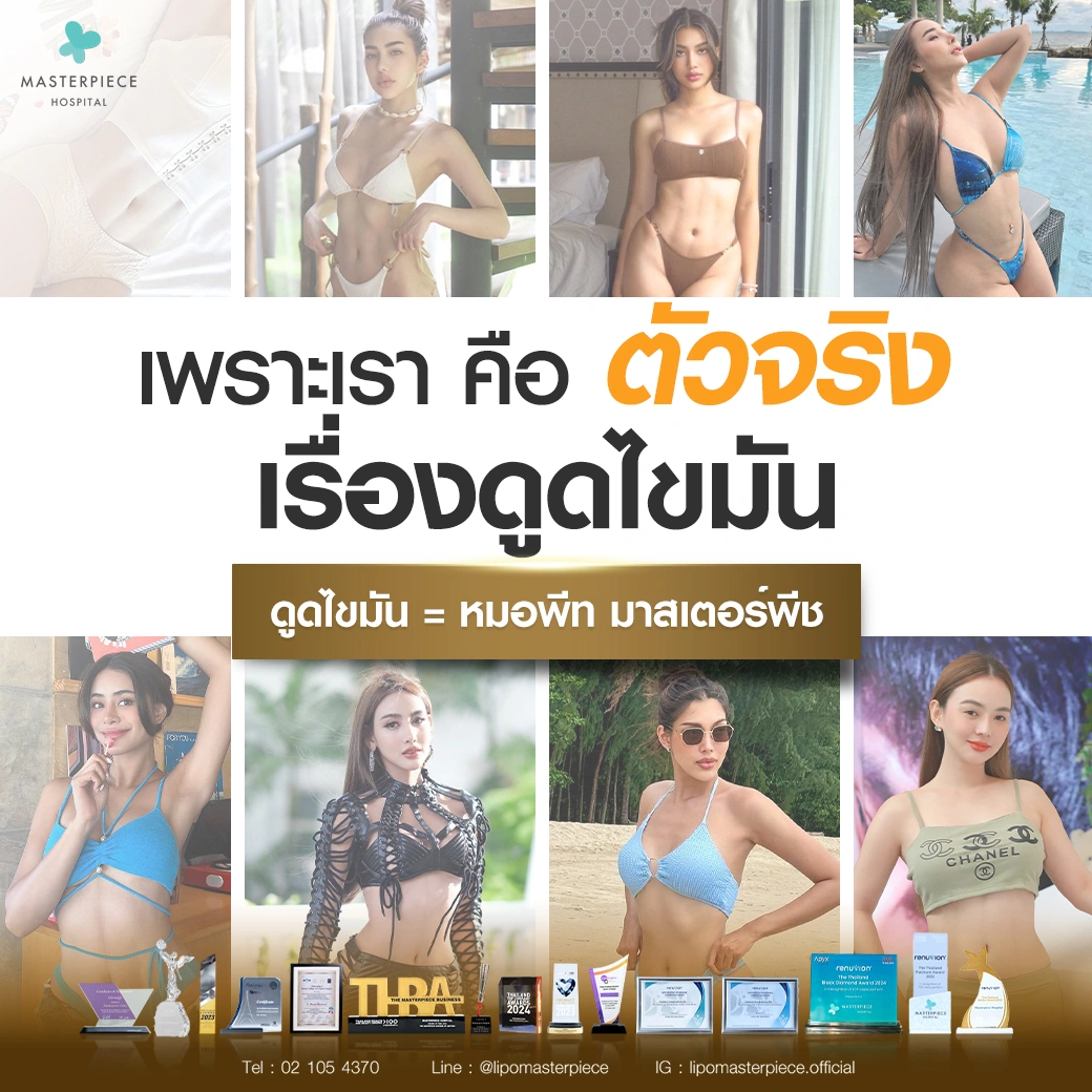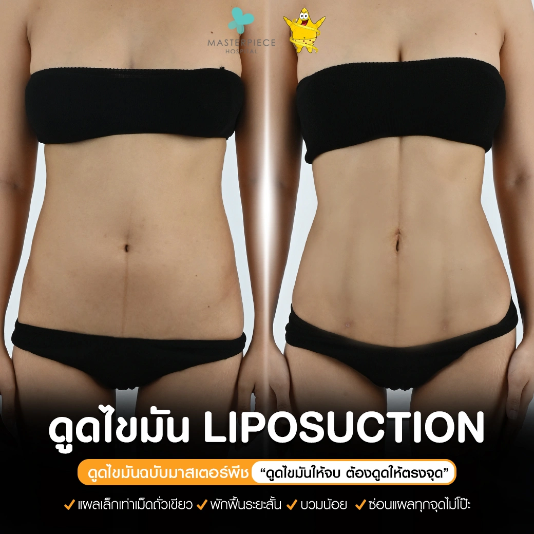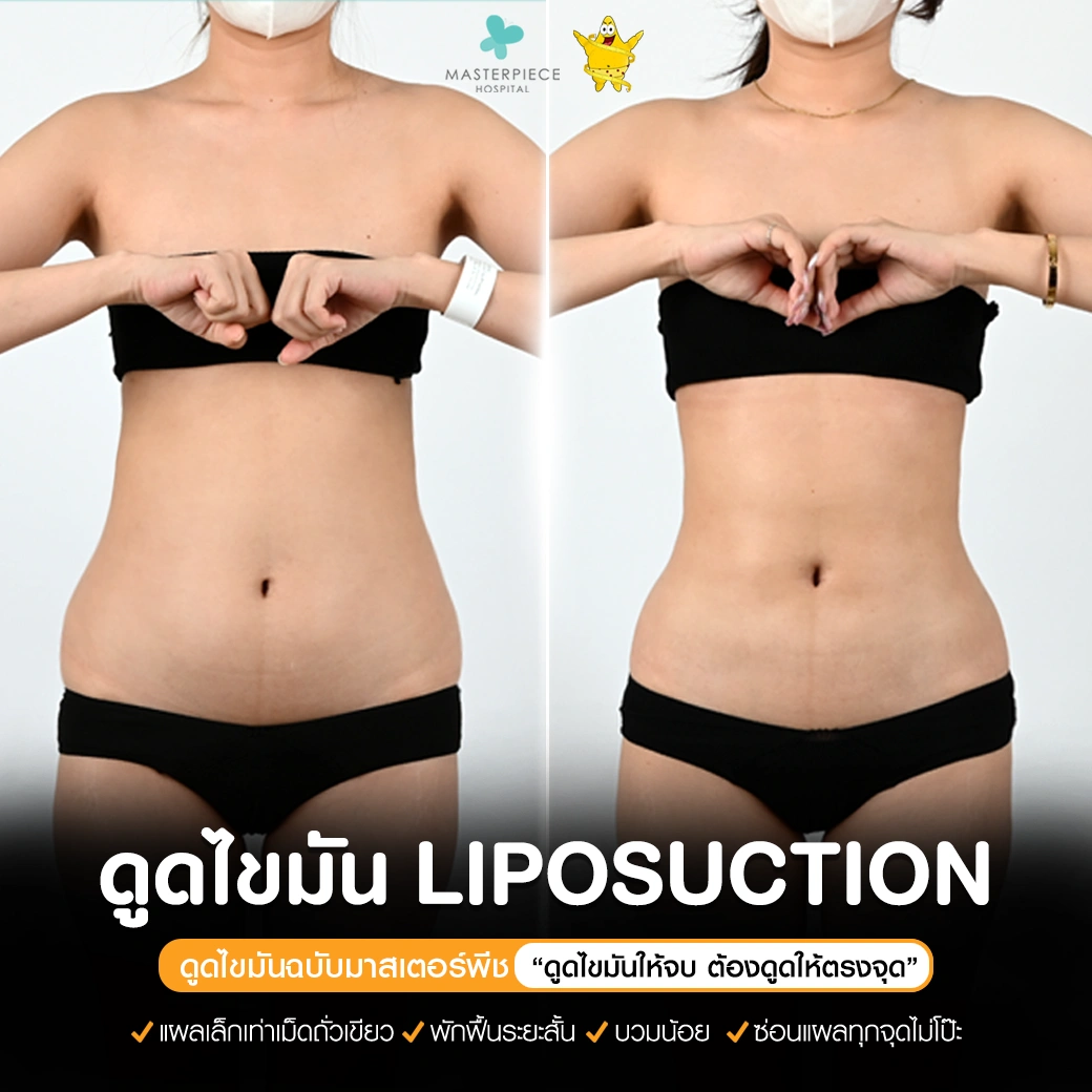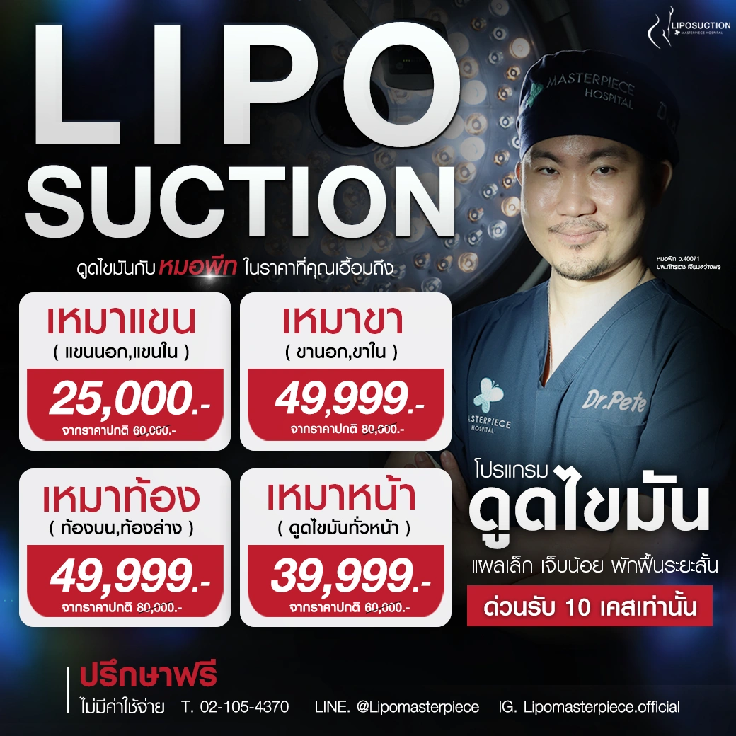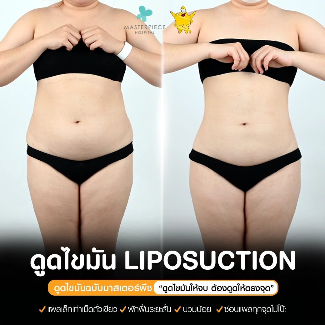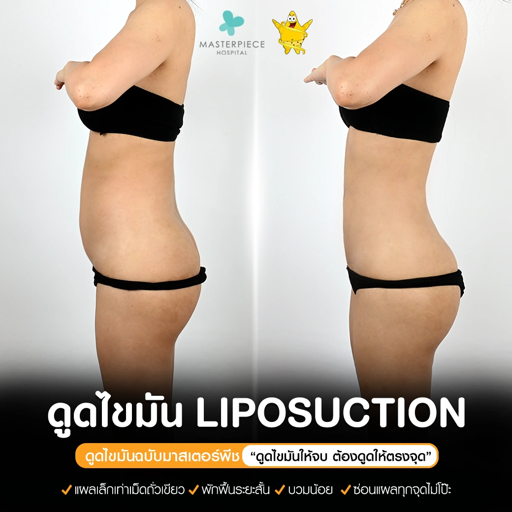 ปรึกษาและดูดไขมันที่โรงพยาบาลมาสเตอร์พีช เพื่อรูปร่างกระชับ สวยงาม ด้วยเทคโนโลยีทันสมัยและทีมแพทย์เฉพาะทางด้านการดูดไขมัน พร้อมให้คำแนะนำและดูแลทุกขั้นตอน จองคิวปรึกษาฟรีวันนี้ ! โทร 02-105-4370 หรือเยี่ยมชมเว็บไซต์ของเราเพื่อดูข้อมูลเพิ่มเติมที่ www.masterpiecehospital.com