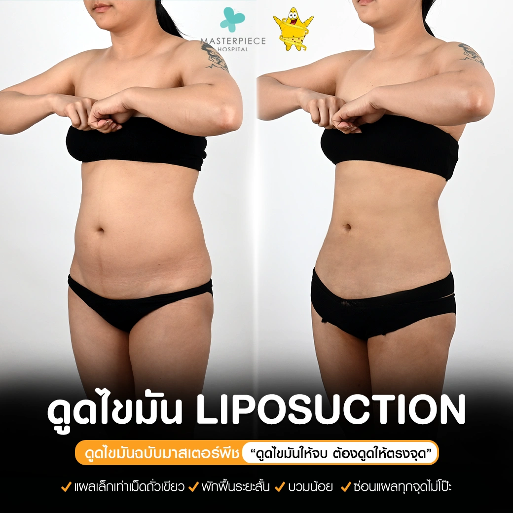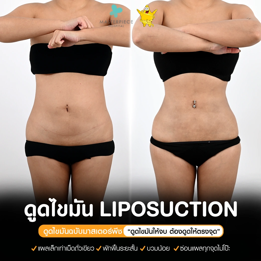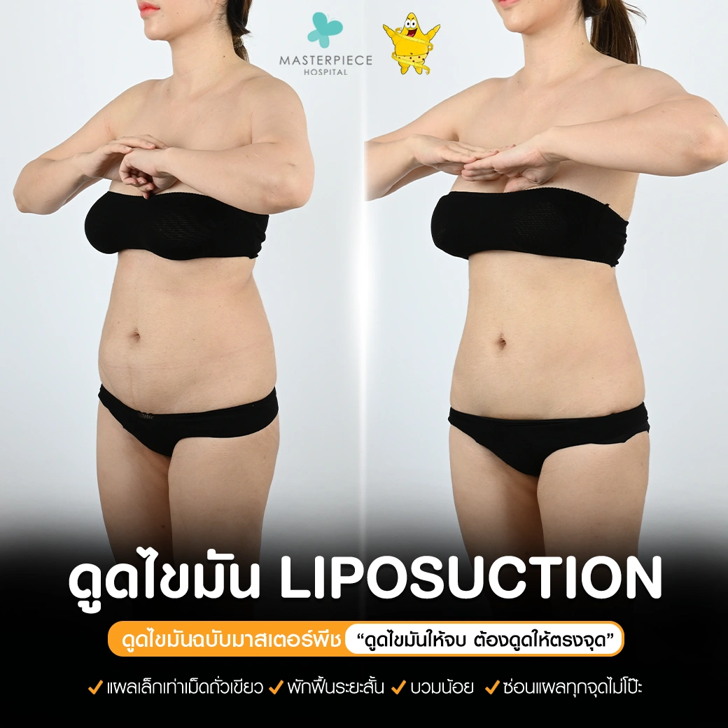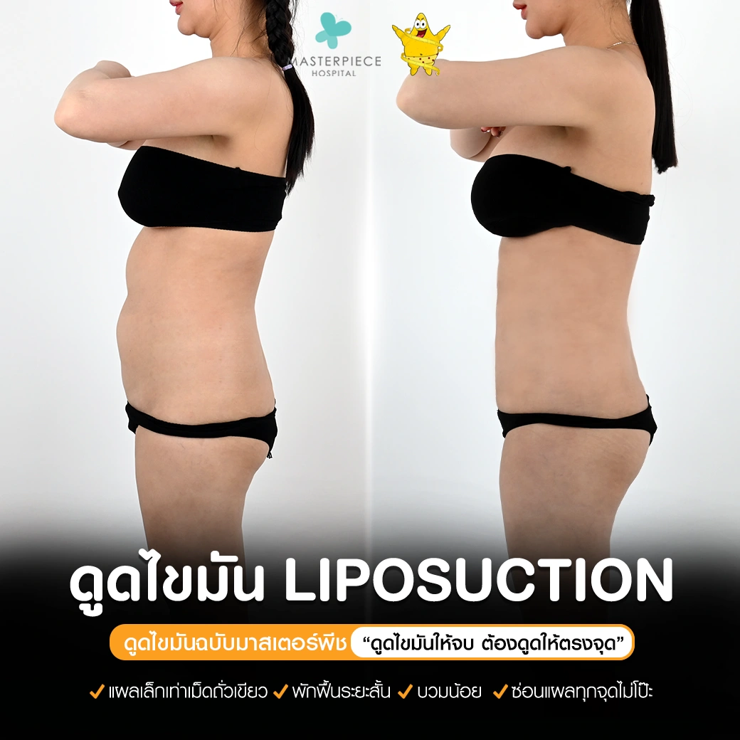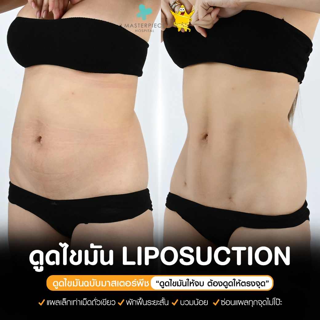 ปรึกษาและดูดไขมันที่โรงพยาบาลมาสเตอร์พีช เพื่อรูปร่างกระชับ สวยงาม ด้วยเทคโนโลยีทันสมัยและทีมแพทย์เฉพาะทางด้านการดูดไขมัน พร้อมให้คำแนะนำและดูแลทุกขั้นตอน จองคิวปรึกษาฟรีวันนี้ ! โทร 02-105-4370 หรือเยี่ยมชมเว็บไซต์ของเราเพื่อดูข้อมูลเพิ่มเติมที่ www.masterpiecehospital.com