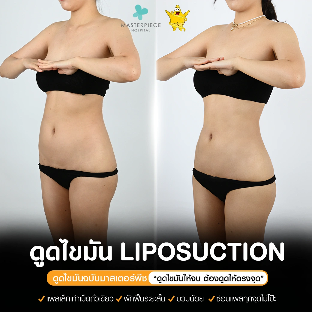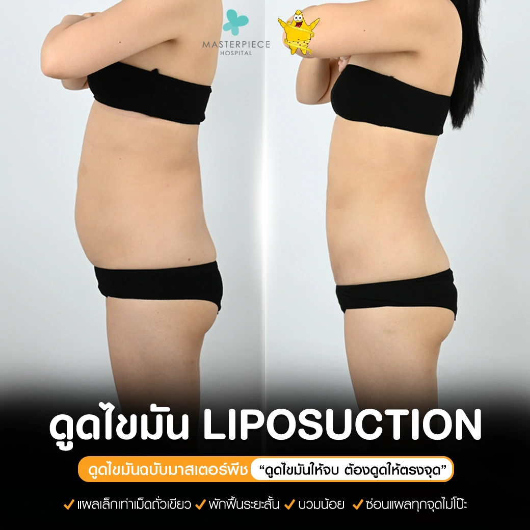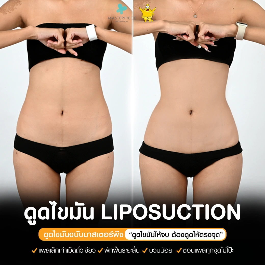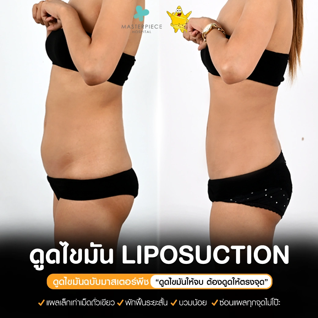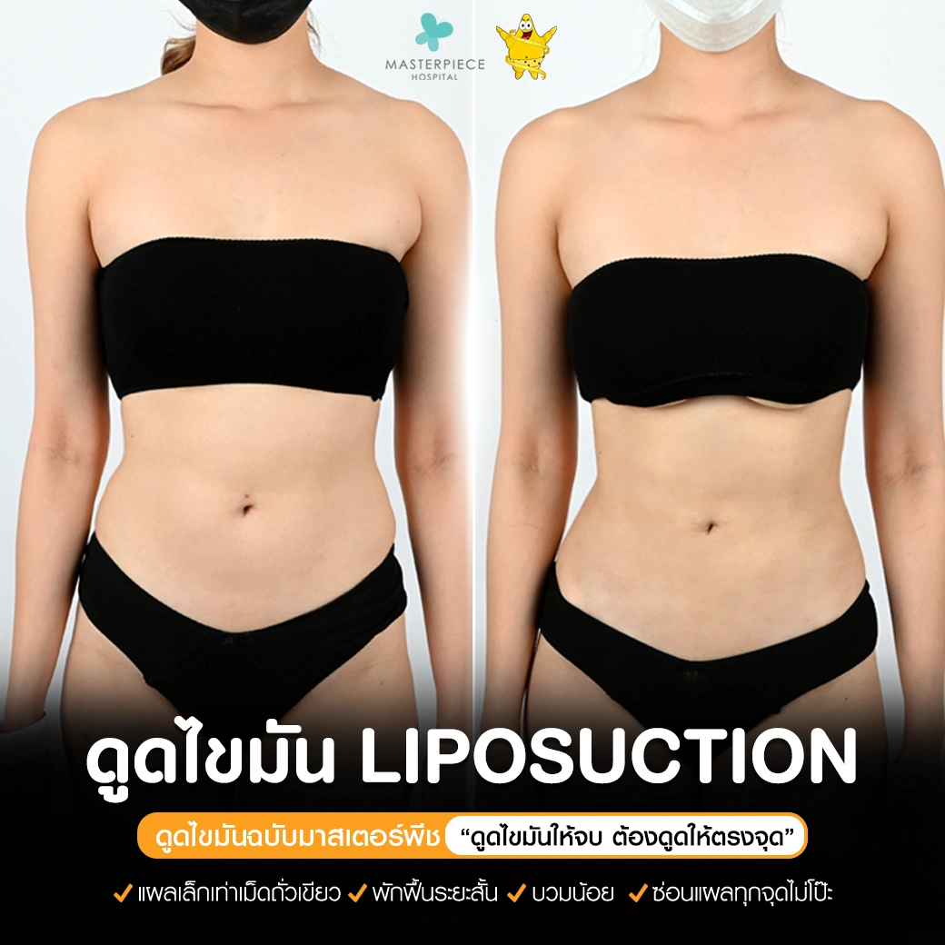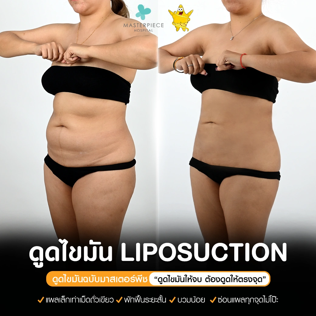 ปรึกษาและดูดไขมันที่โรงพยาบาลมาสเตอร์พีช เพื่อรูปร่างกระชับ สวยงาม ด้วยเทคโนโลยีทันสมัยและทีมแพทย์เฉพาะทางด้านการดูดไขมัน พร้อมให้คำแนะนำและดูแลทุกขั้นตอน จองคิวปรึกษาฟรีวันนี้ ! โทร 02-105-4370 หรือเยี่ยมชมเว็บไซต์ของเราเพื่อดูข้อมูลเพิ่มเติมที่ www.masterpiecehospital.com