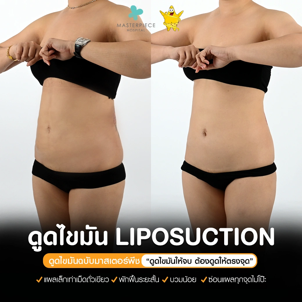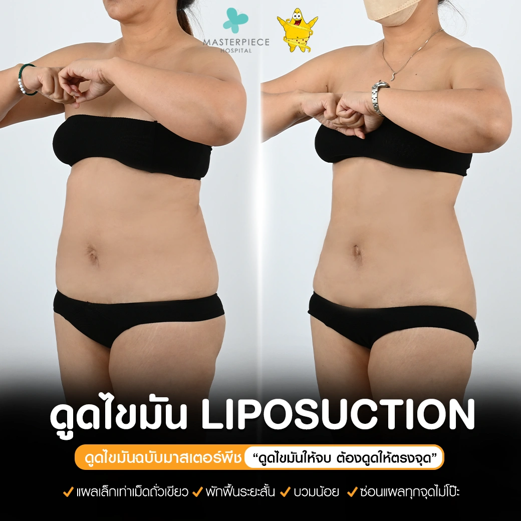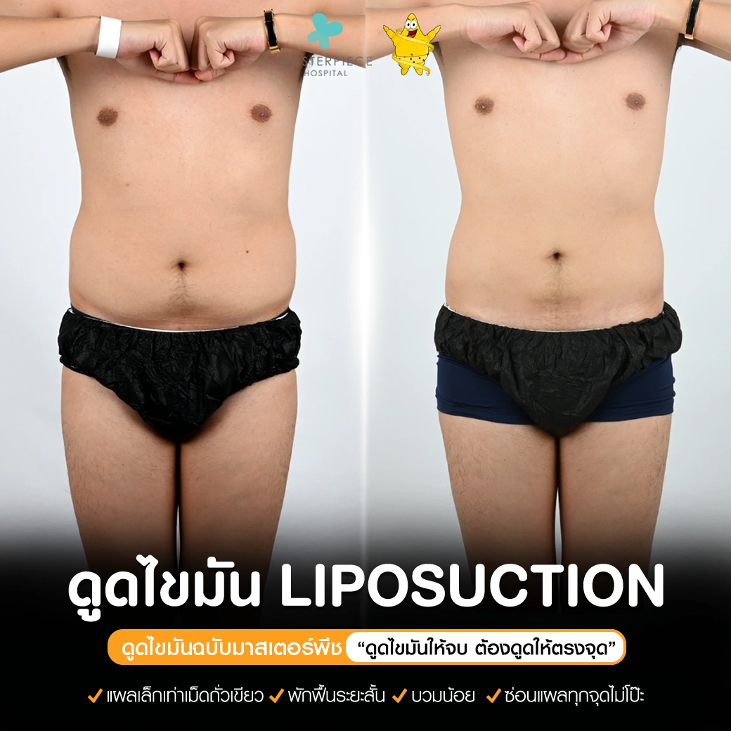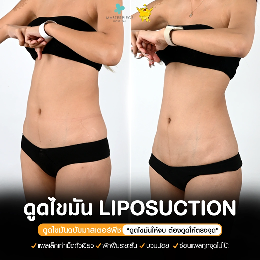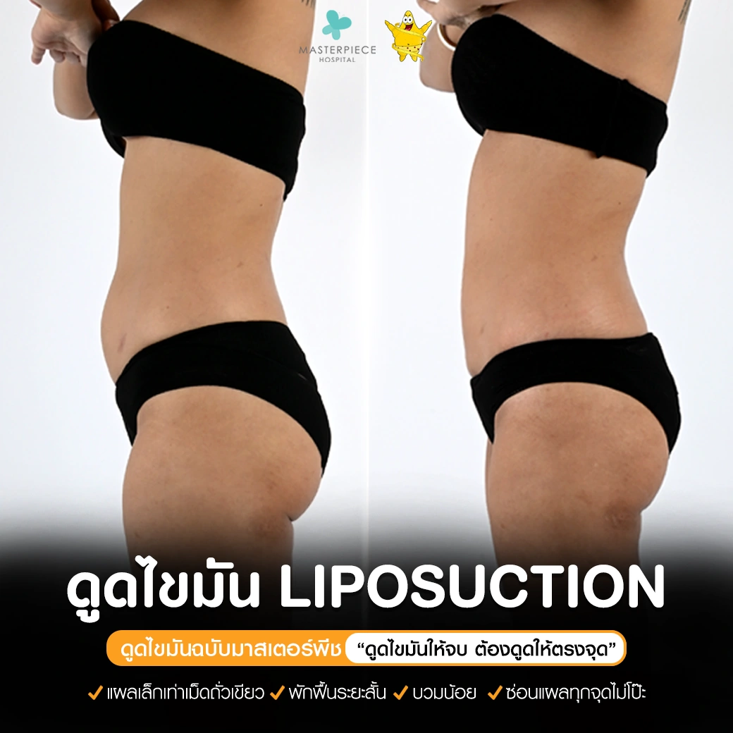 ปรึกษาและดูดไขมันที่โรงพยาบาลมาสเตอร์พีช เพื่อรูปร่างกระชับ สวยงาม ด้วยเทคโนโลยีทันสมัยและทีมแพทย์เฉพาะทางด้านการดูดไขมัน พร้อมให้คำแนะนำและดูแลทุกขั้นตอน จองคิวปรึกษาฟรีวันนี้ ! โทร 02-105-4370 หรือเยี่ยมชมเว็บไซต์ของเราเพื่อดูข้อมูลเพิ่มเติมที่ www.masterpiecehospital.com