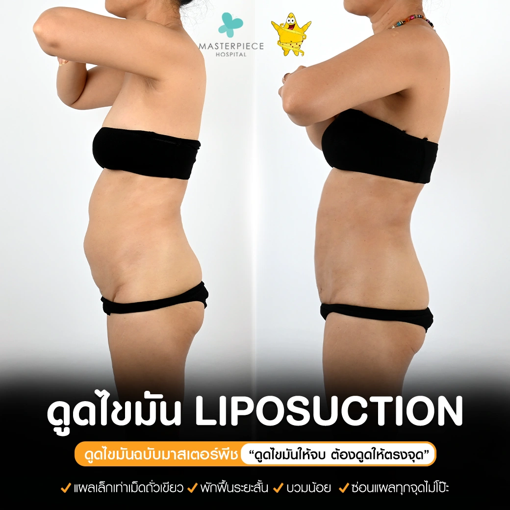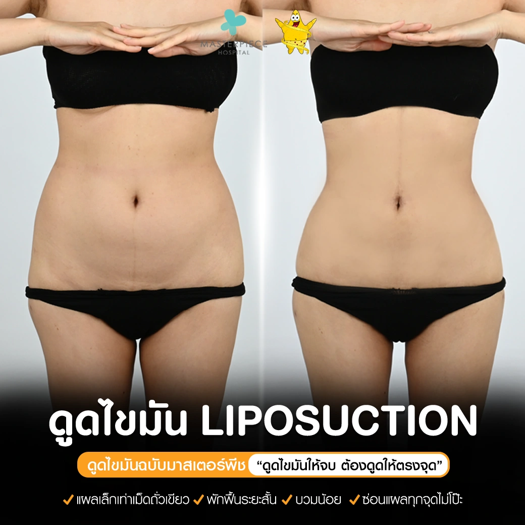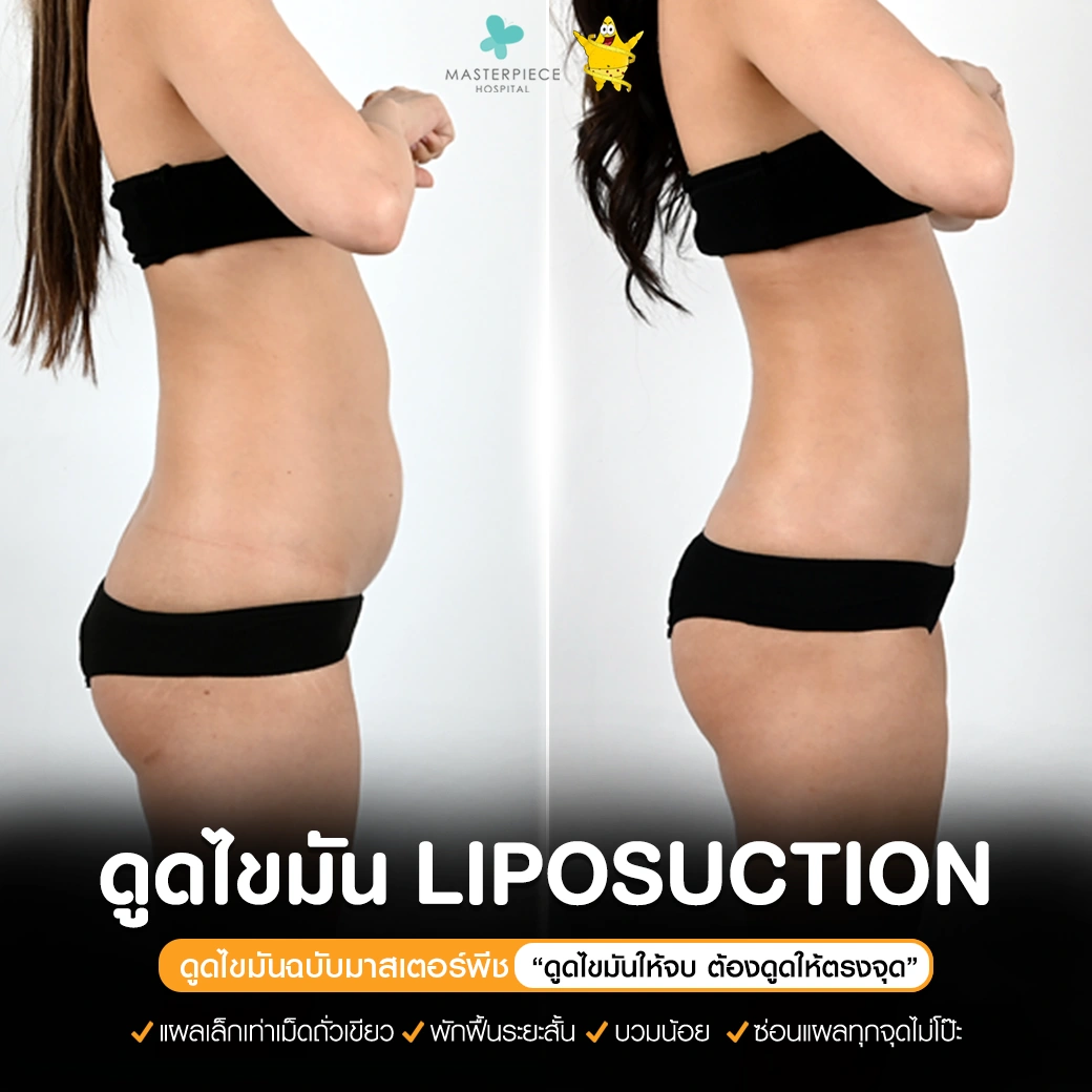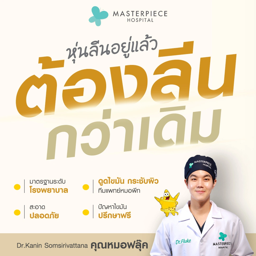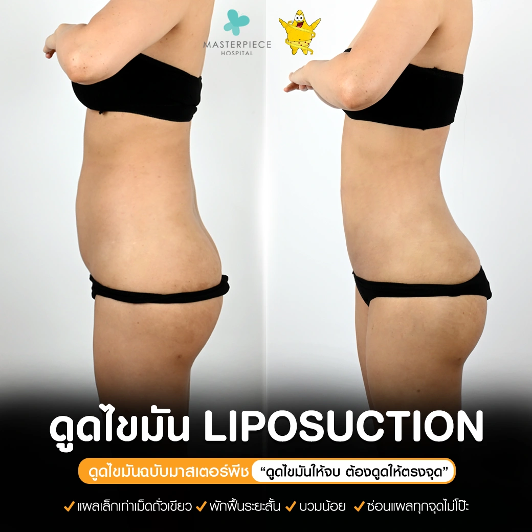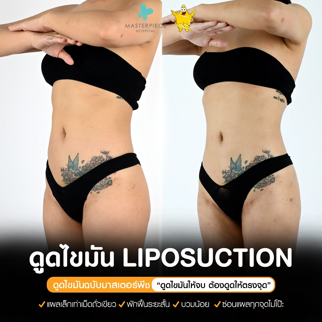 ปรึกษาและดูดไขมันที่โรงพยาบาลมาสเตอร์พีช เพื่อรูปร่างกระชับ สวยงาม ด้วยเทคโนโลยีทันสมัยและทีมแพทย์เฉพาะทางด้านการดูดไขมัน พร้อมให้คำแนะนำและดูแลทุกขั้นตอน จองคิวปรึกษาฟรีวันนี้ ! โทร 02-105-4370 หรือเยี่ยมชมเว็บไซต์ของเราเพื่อดูข้อมูลเพิ่มเติมที่ www.masterpiecehospital.com