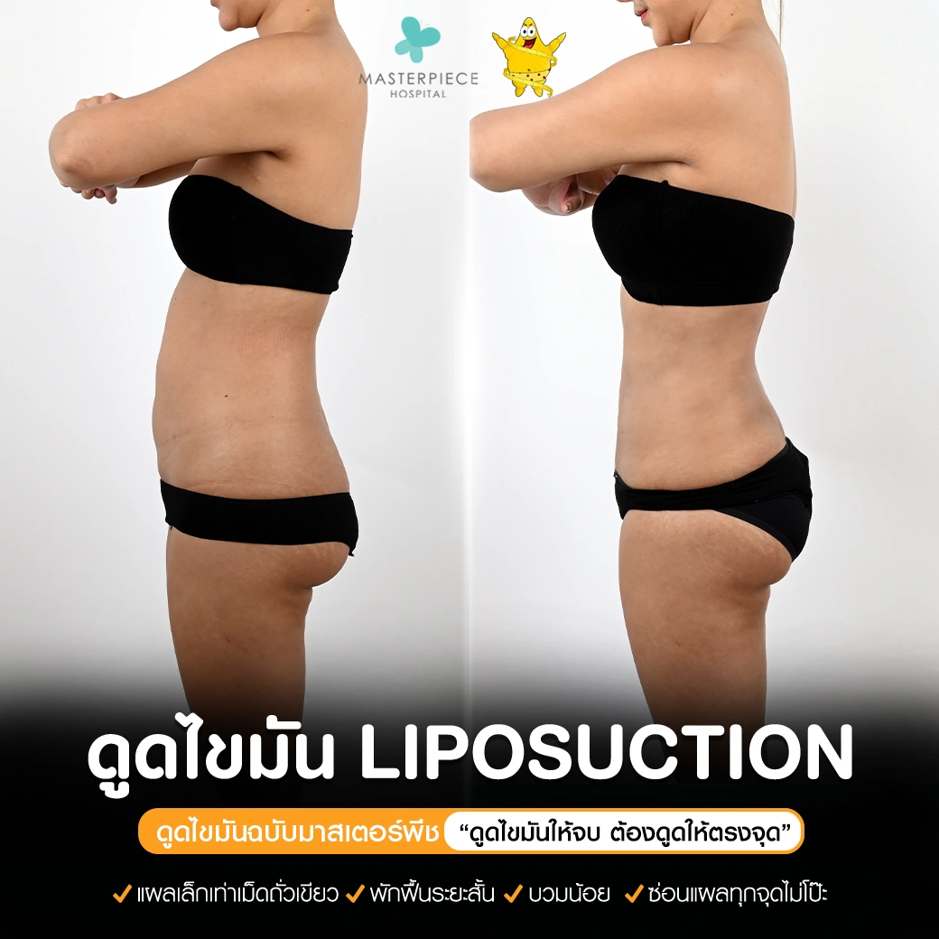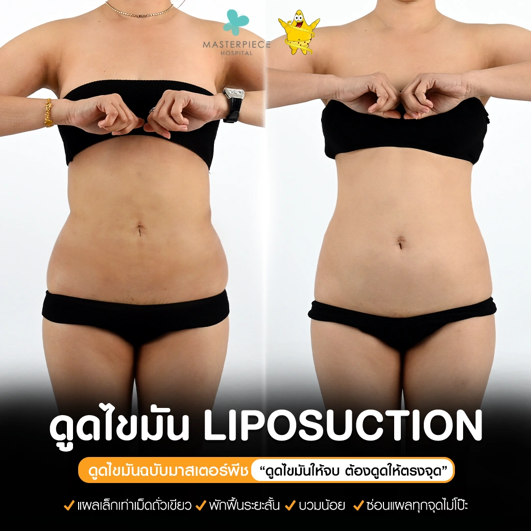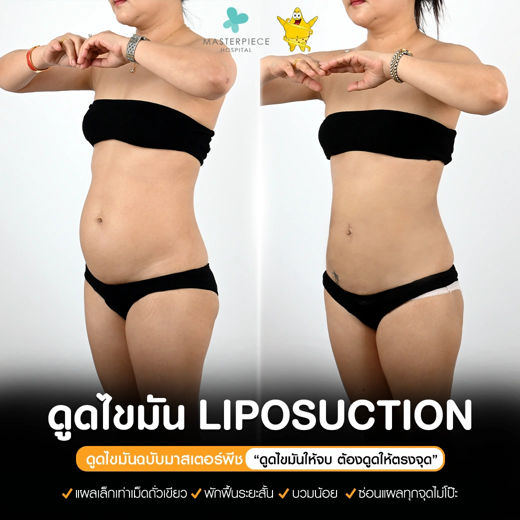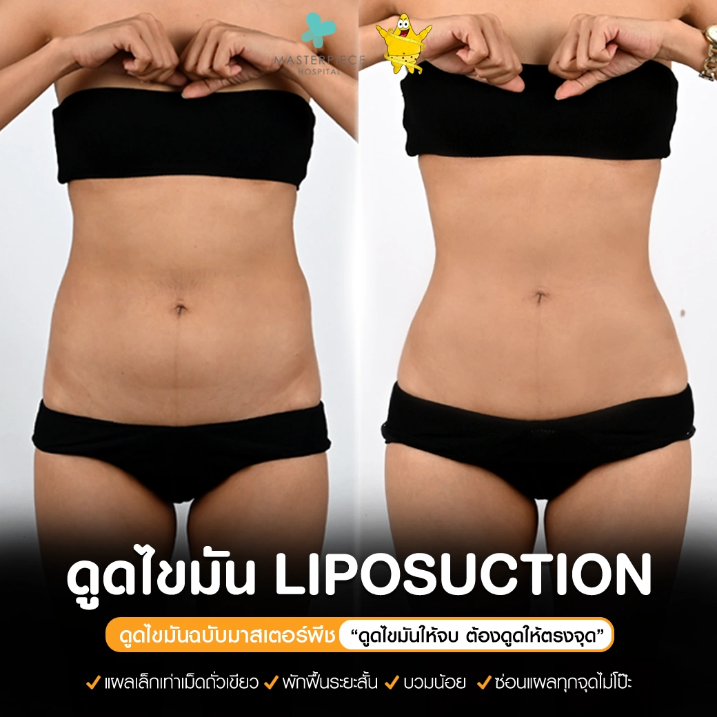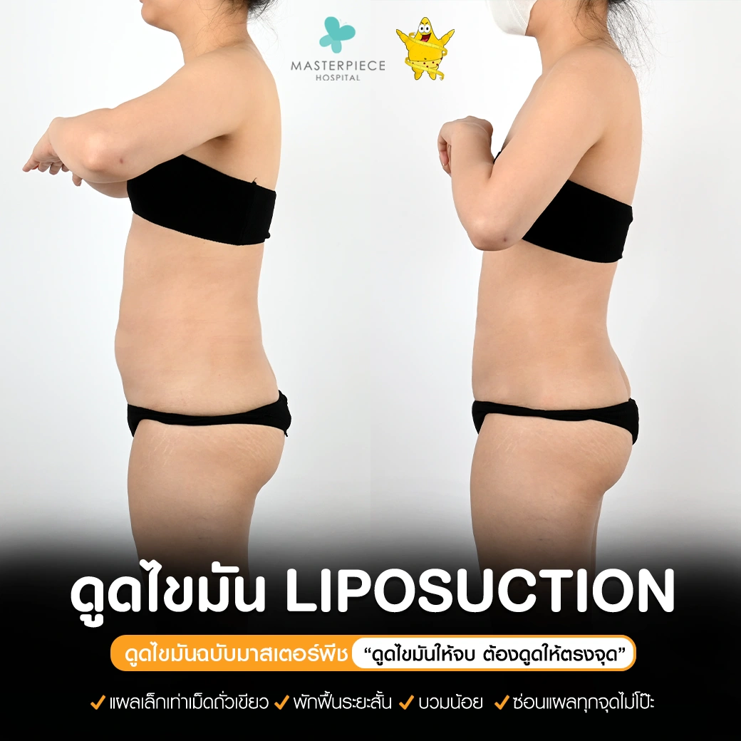 ปรึกษาและดูดไขมันที่โรงพยาบาลมาสเตอร์พีช เพื่อรูปร่างกระชับ สวยงาม ด้วยเทคโนโลยีทันสมัยและทีมแพทย์เฉพาะทางด้านการดูดไขมัน พร้อมให้คำแนะนำและดูแลทุกขั้นตอน จองคิวปรึกษาฟรีวันนี้ ! โทร 02-105-4370 หรือเยี่ยมชมเว็บไซต์ของเราเพื่อดูข้อมูลเพิ่มเติมที่ www.masterpiecehospital.com