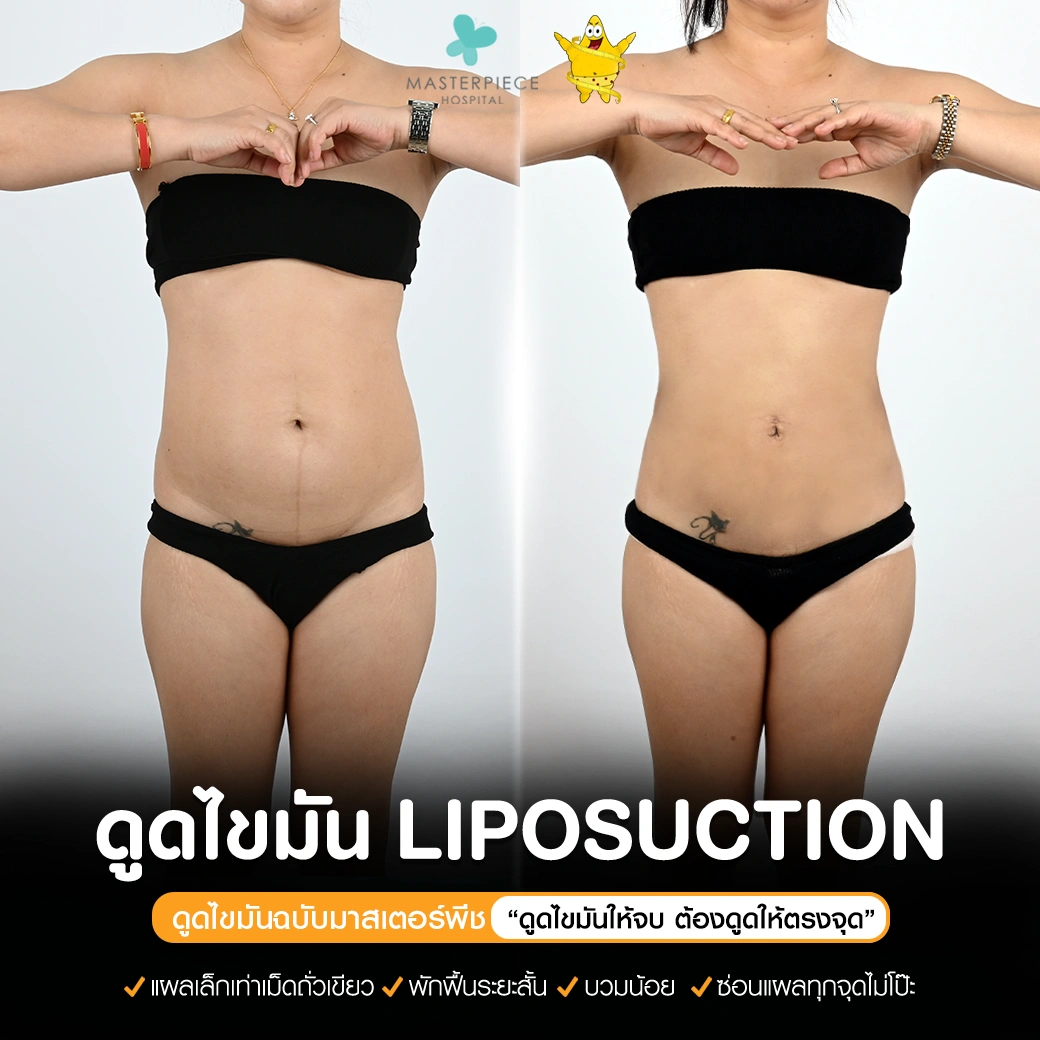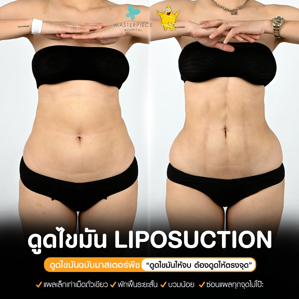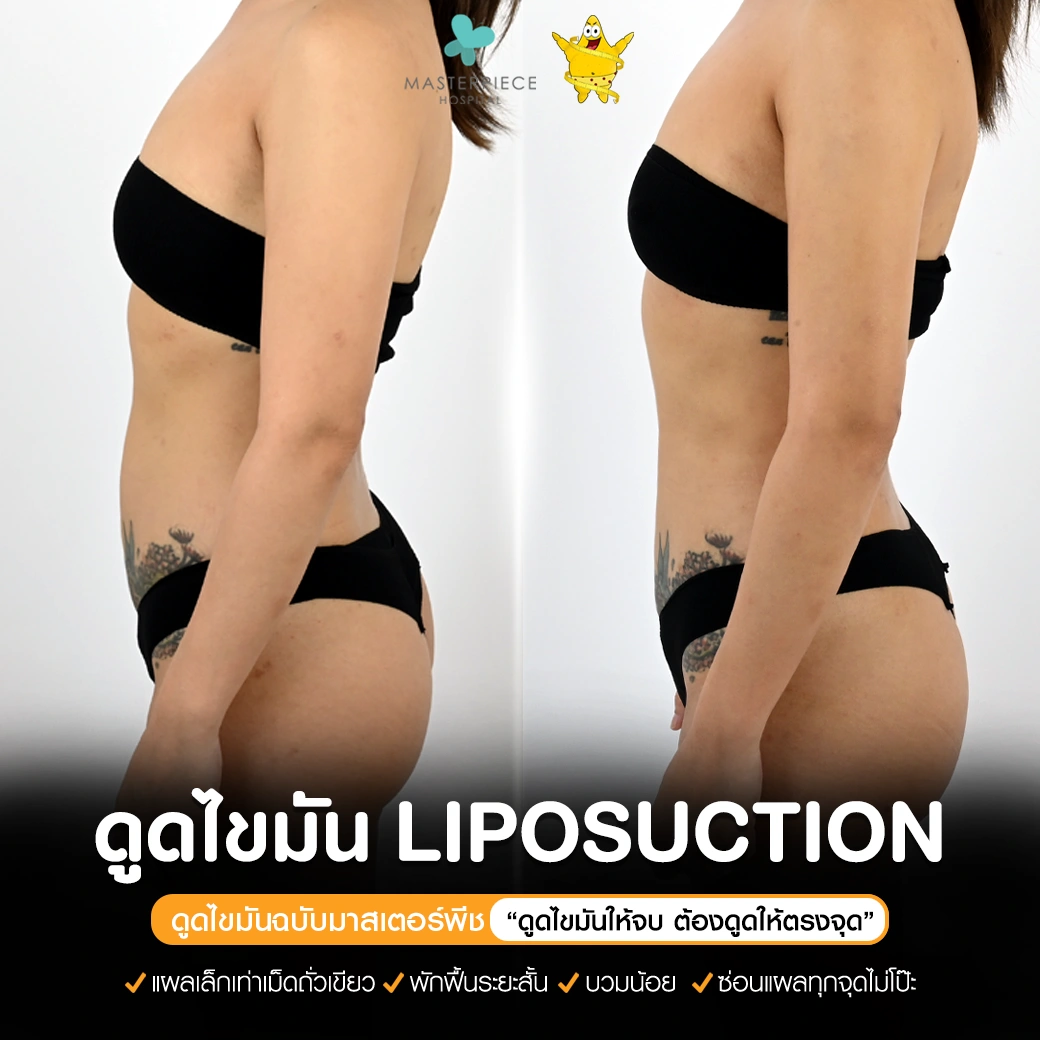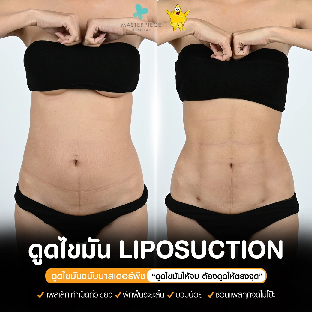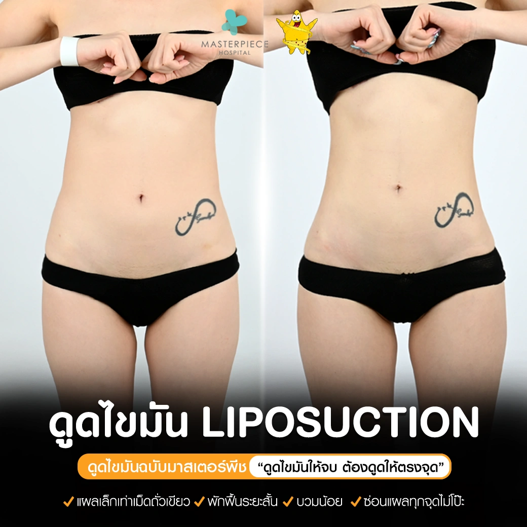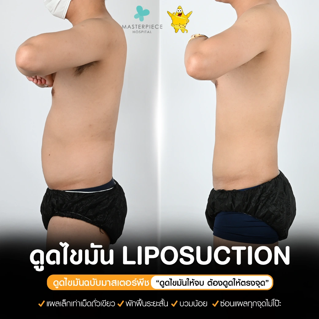ปรึกษาและดูดไขมันที่โรงพยาบาลมาสเตอร์พีช เพื่อรูปร่างกระชับ สวยงาม ด้วยเทคโนโลยีทันสมัยและทีมแพทย์เฉพาะทางด้านการดูดไขมัน พร้อมให้คำแนะนำและดูแลทุกขั้นตอน จองคิวปรึกษาฟรีวันนี้ ! โทร 02-105-4370 หรือเยี่ยมชมเว็บไซต์ของเราเพื่อดูข้อมูลเพิ่มเติมที่ www.masterpiecehospital.com