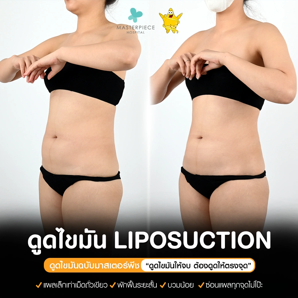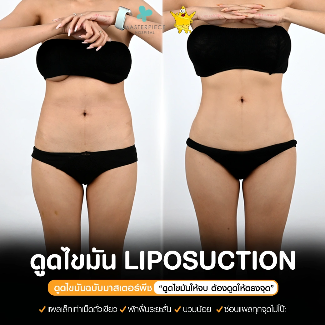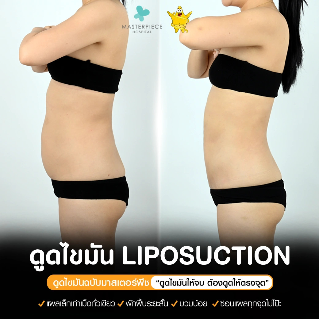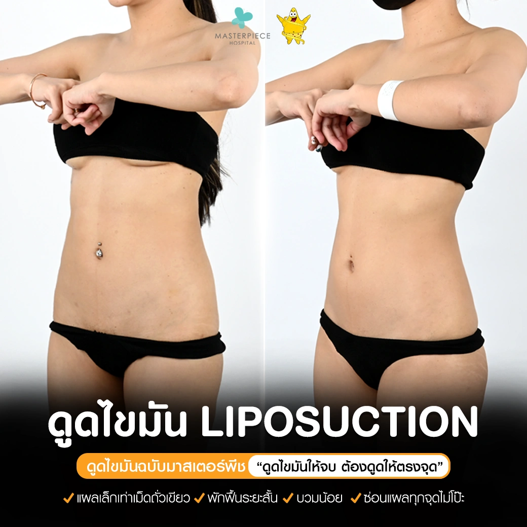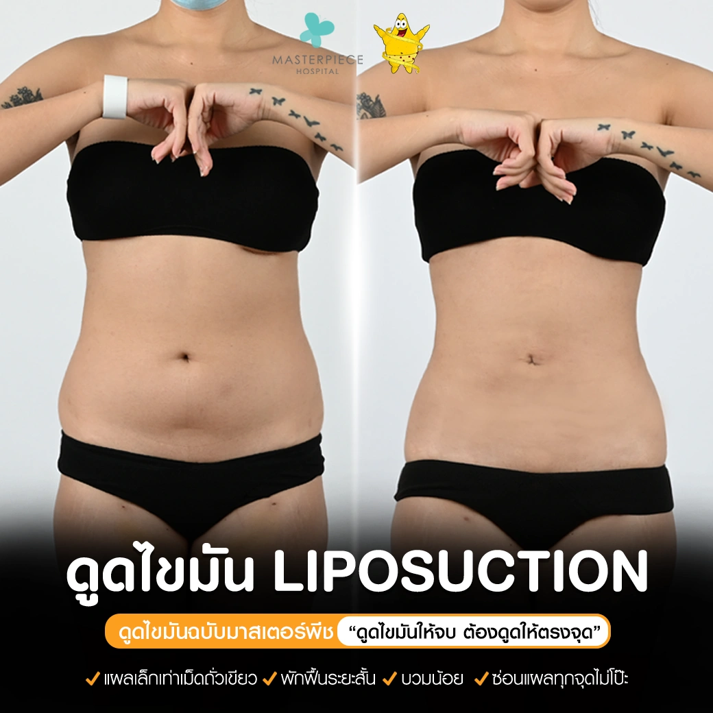 ปรึกษาและดูดไขมันที่โรงพยาบาลมาสเตอร์พีช เพื่อรูปร่างกระชับ สวยงาม ด้วยเทคโนโลยีทันสมัยและทีมแพทย์เฉพาะทางด้านการดูดไขมัน พร้อมให้คำแนะนำและดูแลทุกขั้นตอน จองคิวปรึกษาฟรีวันนี้ ! โทร 02-105-4370 หรือเยี่ยมชมเว็บไซต์ของเราเพื่อดูข้อมูลเพิ่มเติมที่ www.masterpiecehospital.com