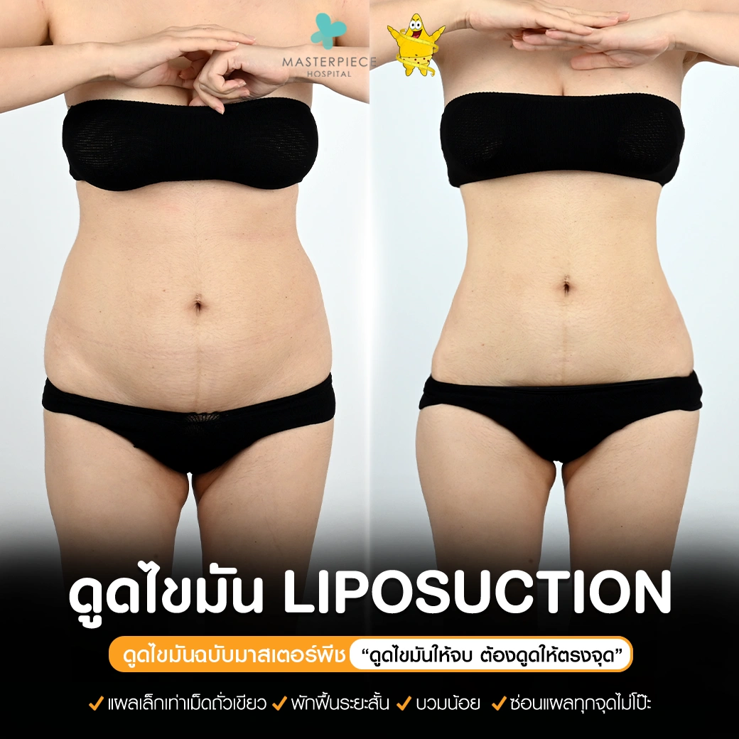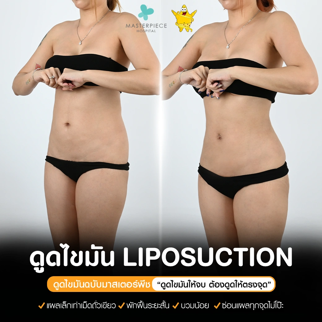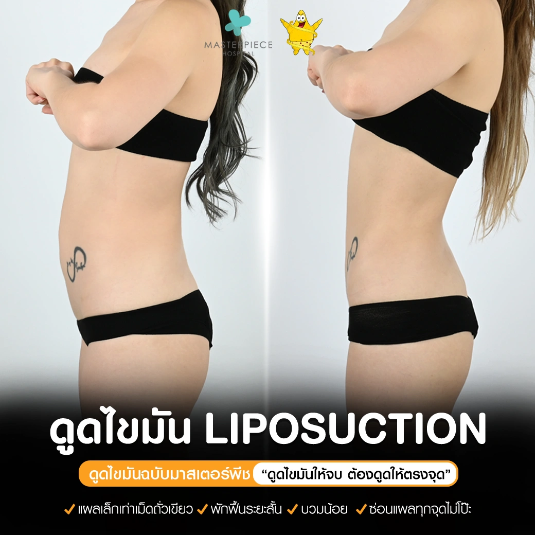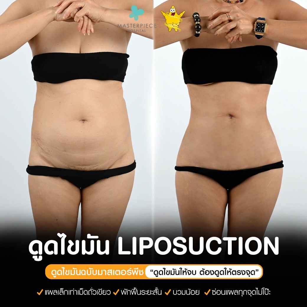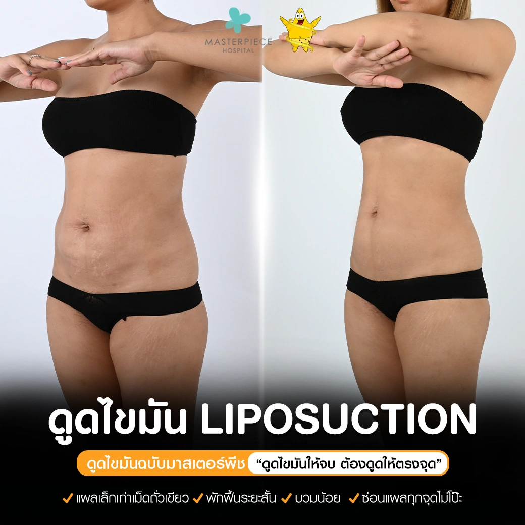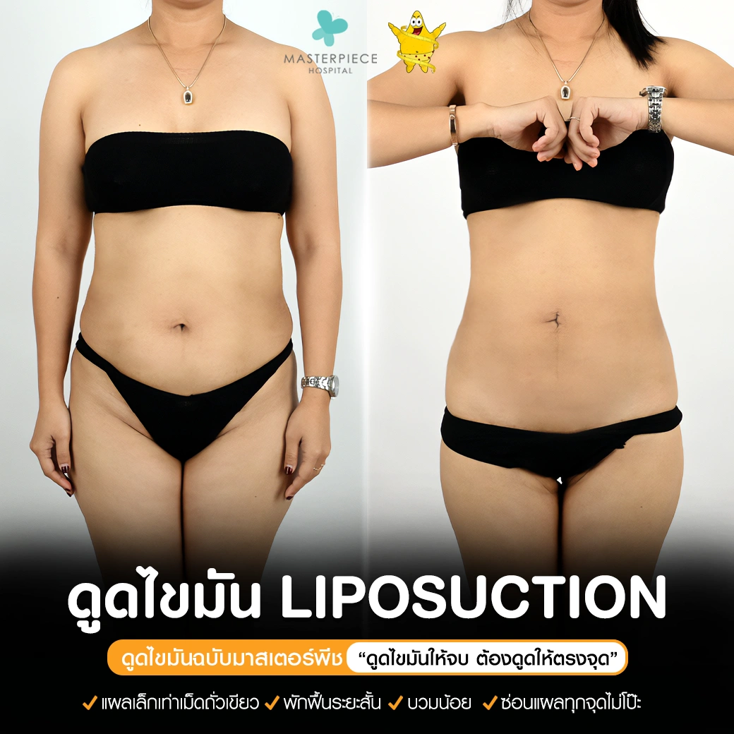 ปรึกษาและดูดไขมันที่โรงพยาบาลมาสเตอร์พีช เพื่อรูปร่างกระชับ สวยงาม ด้วยเทคโนโลยีทันสมัยและทีมแพทย์เฉพาะทางด้านการดูดไขมัน พร้อมให้คำแนะนำและดูแลทุกขั้นตอน จองคิวปรึกษาฟรีวันนี้ ! โทร 02-105-4370 หรือเยี่ยมชมเว็บไซต์ของเราเพื่อดูข้อมูลเพิ่มเติมที่ www.masterpiecehospital.com