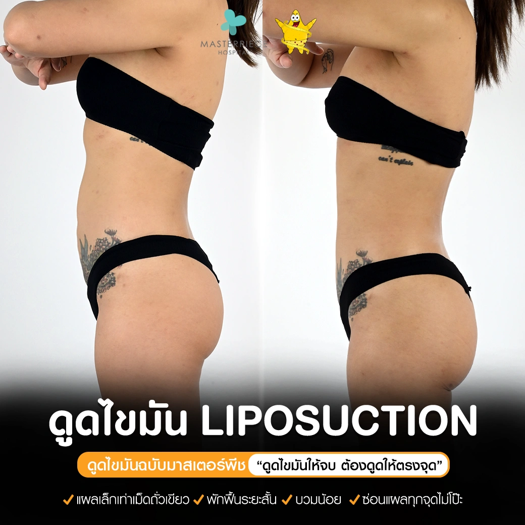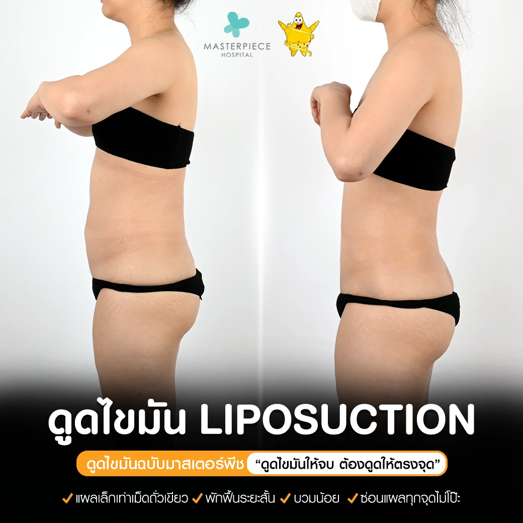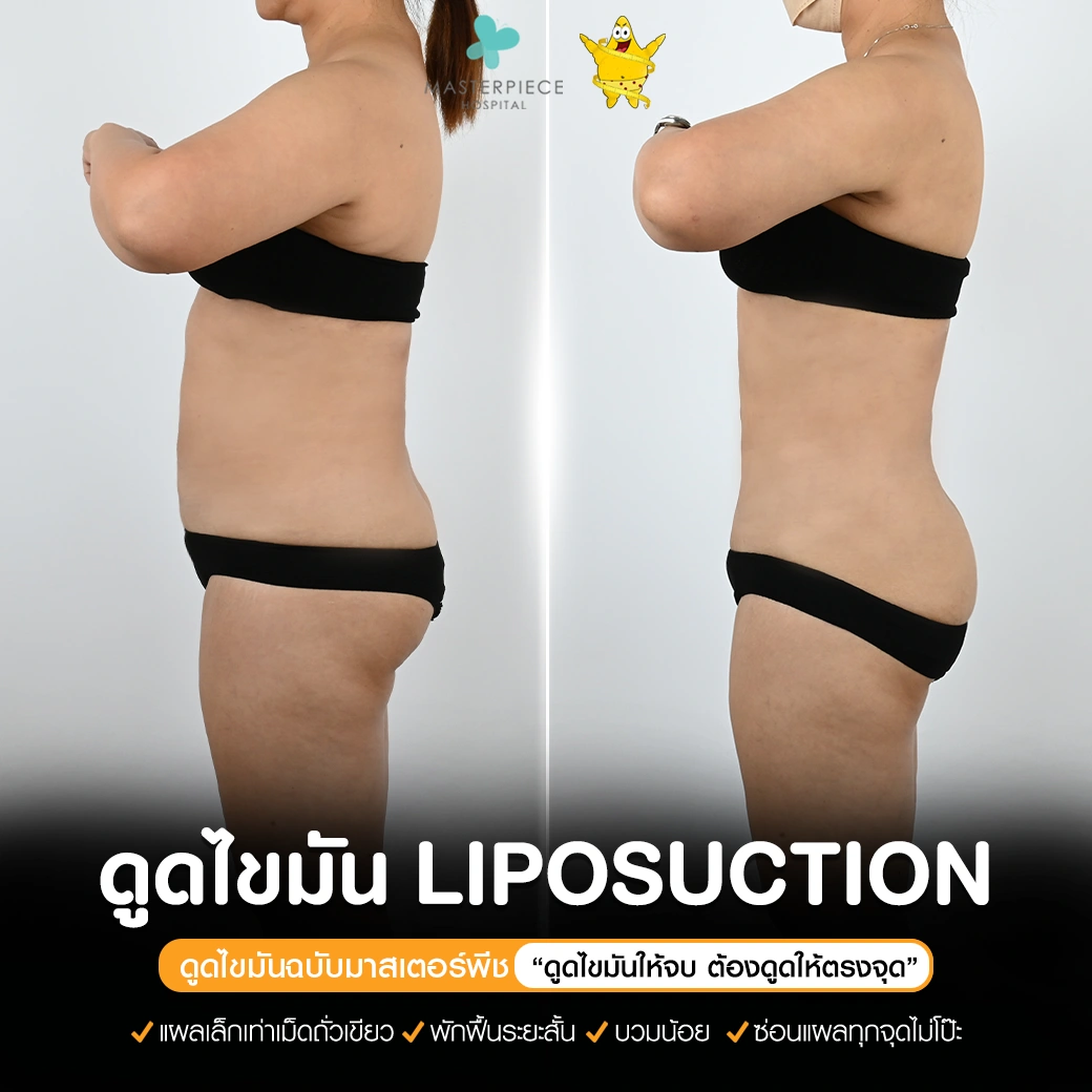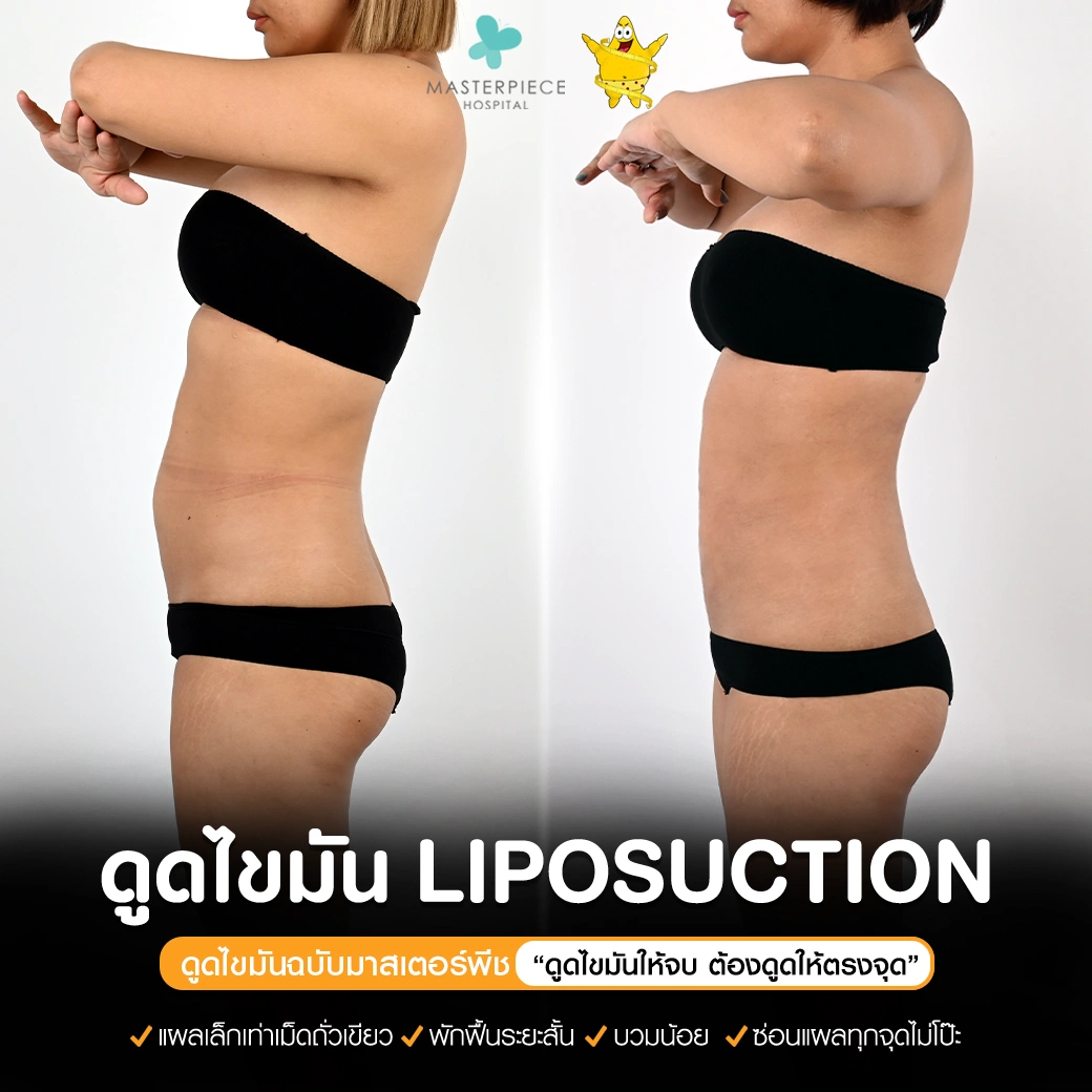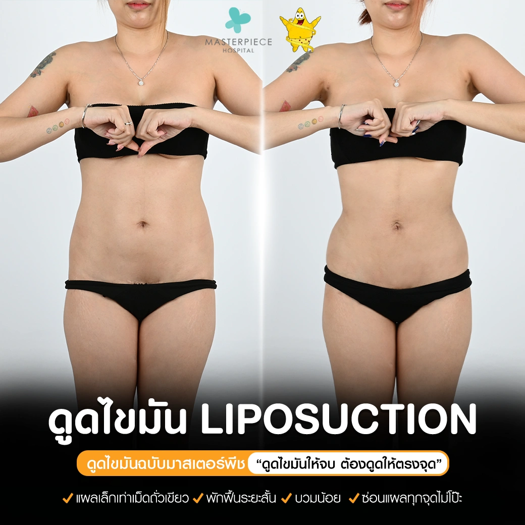 ปรึกษาและดูดไขมันที่โรงพยาบาลมาสเตอร์พีช เพื่อรูปร่างกระชับ สวยงาม ด้วยเทคโนโลยีทันสมัยและทีมแพทย์เฉพาะทางด้านการดูดไขมัน พร้อมให้คำแนะนำและดูแลทุกขั้นตอน จองคิวปรึกษาฟรีวันนี้ ! โทร 02-105-4370 หรือเยี่ยมชมเว็บไซต์ของเราเพื่อดูข้อมูลเพิ่มเติมที่ www.masterpiecehospital.com