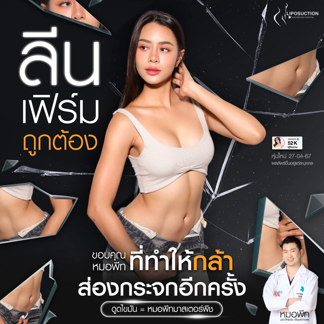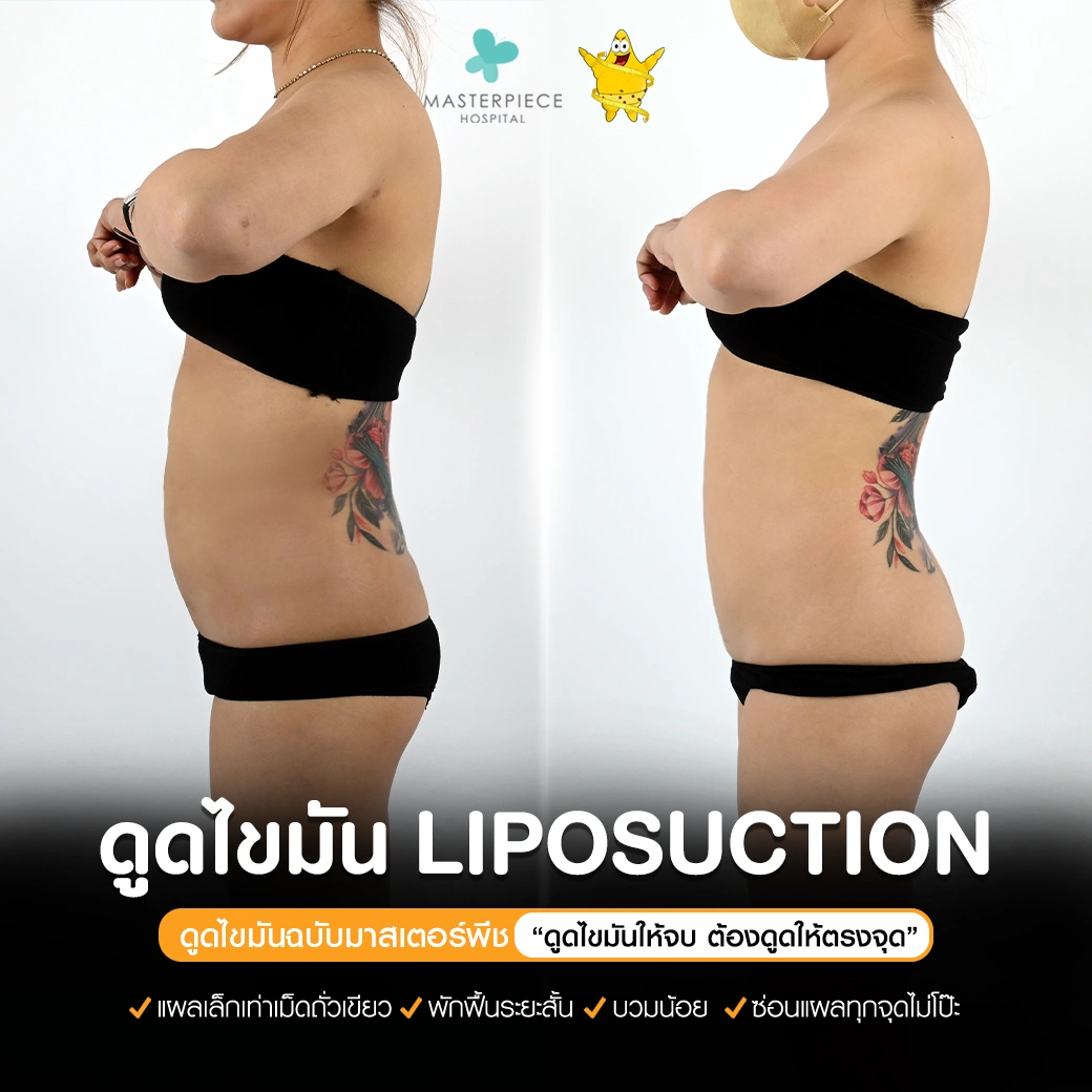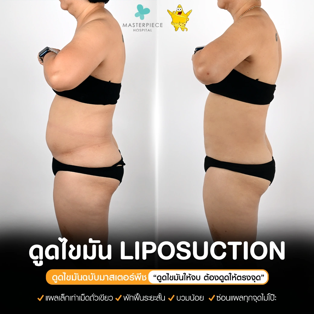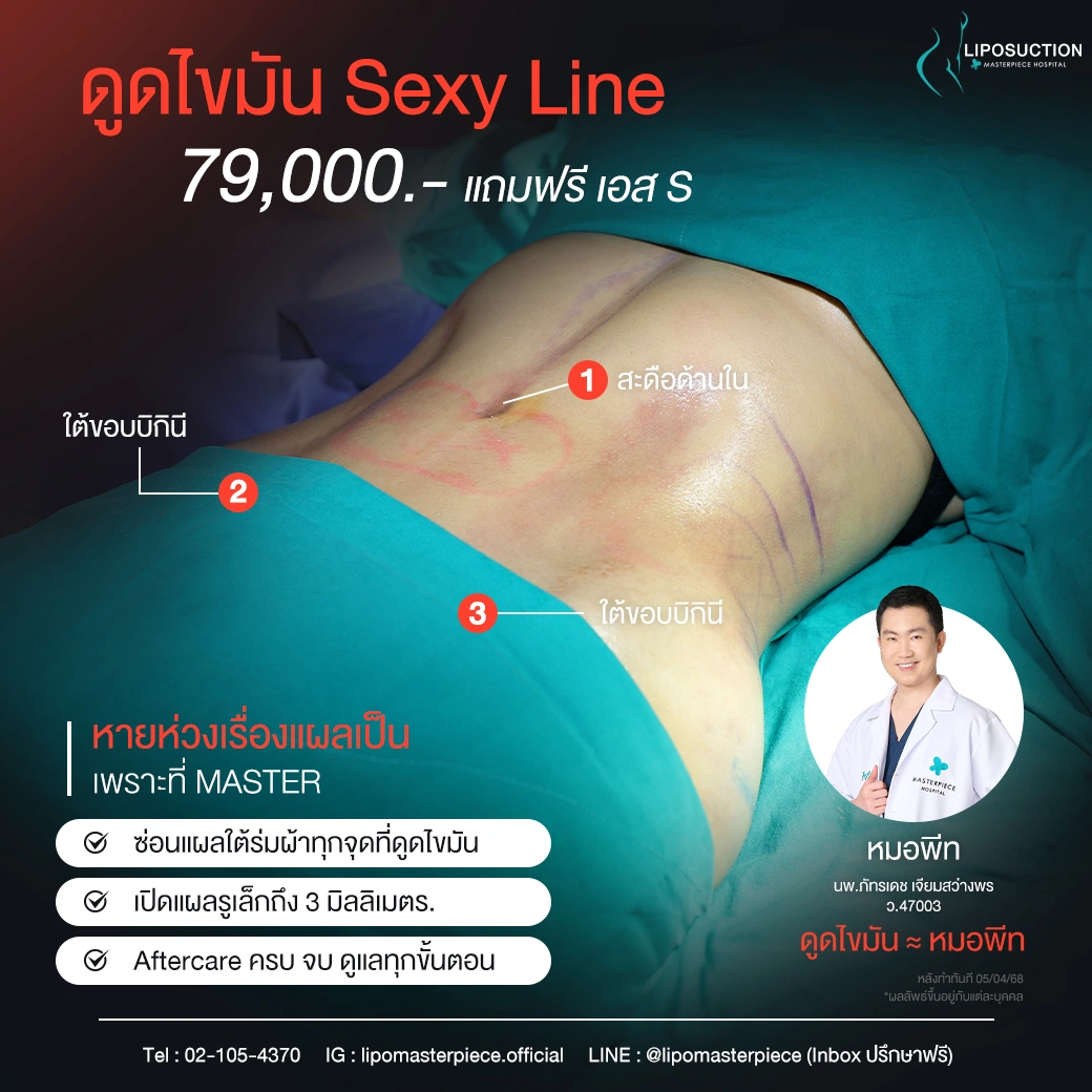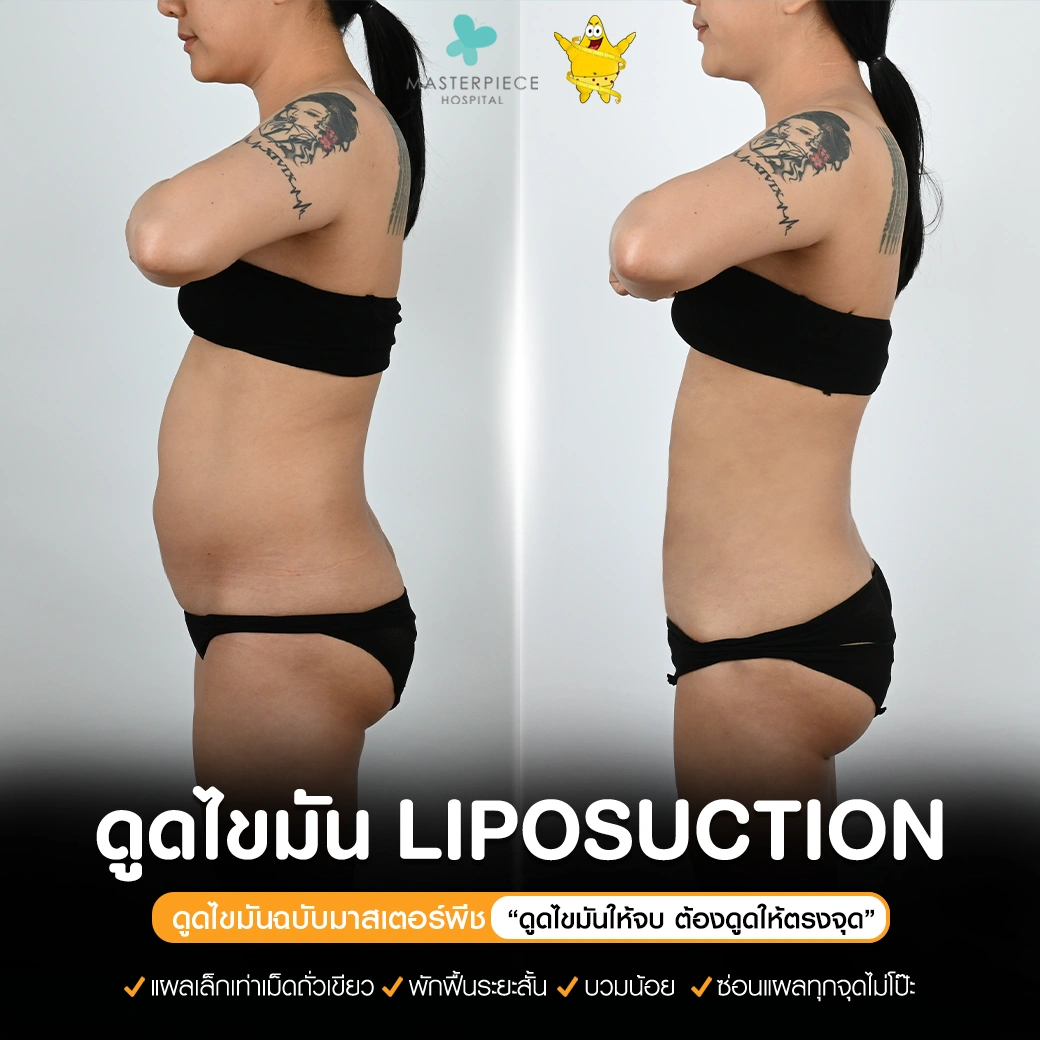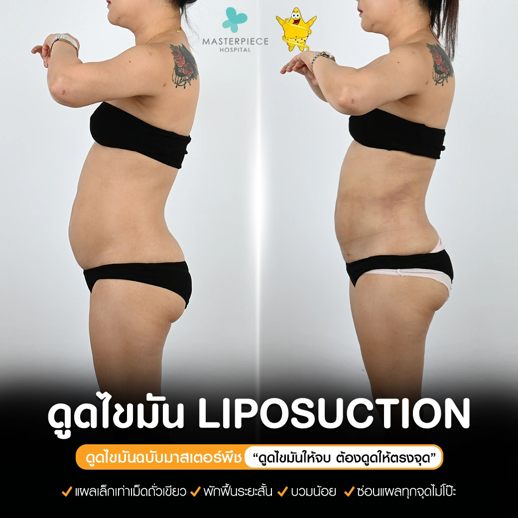 ปรึกษาและดูดไขมันที่โรงพยาบาลมาสเตอร์พีช เพื่อรูปร่างกระชับ สวยงาม ด้วยเทคโนโลยีทันสมัยและทีมแพทย์เฉพาะทางด้านการดูดไขมัน พร้อมให้คำแนะนำและดูแลทุกขั้นตอน จองคิวปรึกษาฟรีวันนี้ ! โทร 02-105-4370 หรือเยี่ยมชมเว็บไซต์ของเราเพื่อดูข้อมูลเพิ่มเติมที่ www.masterpiecehospital.com