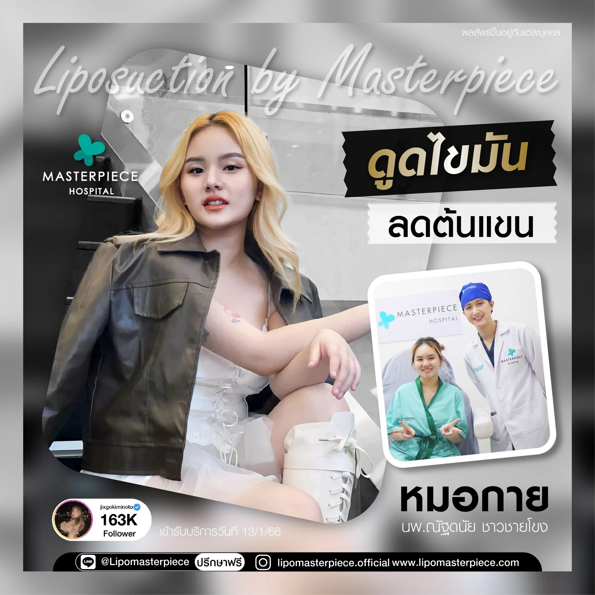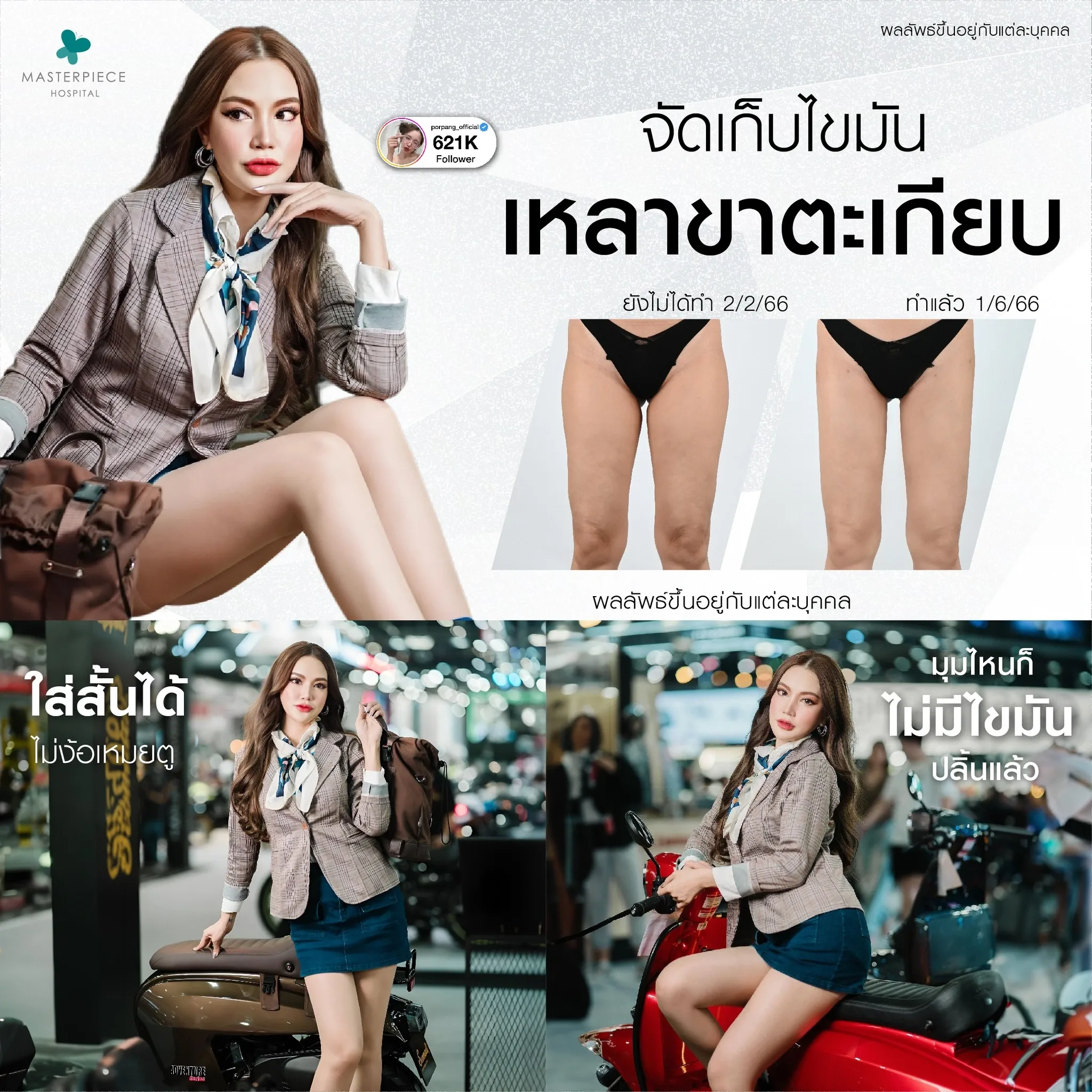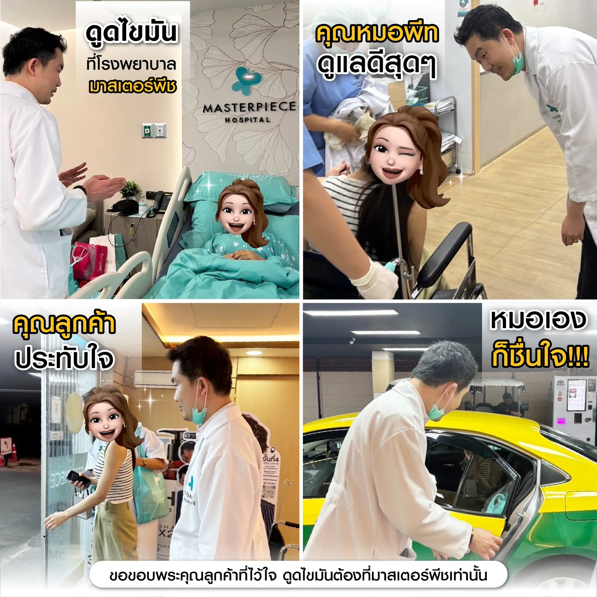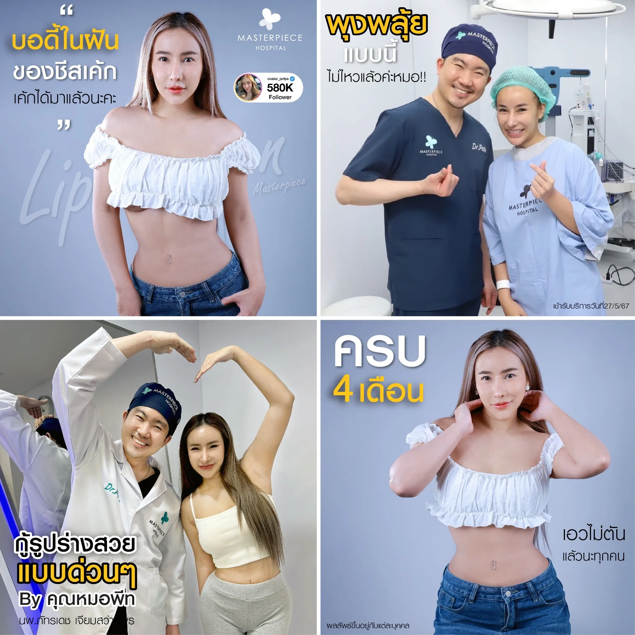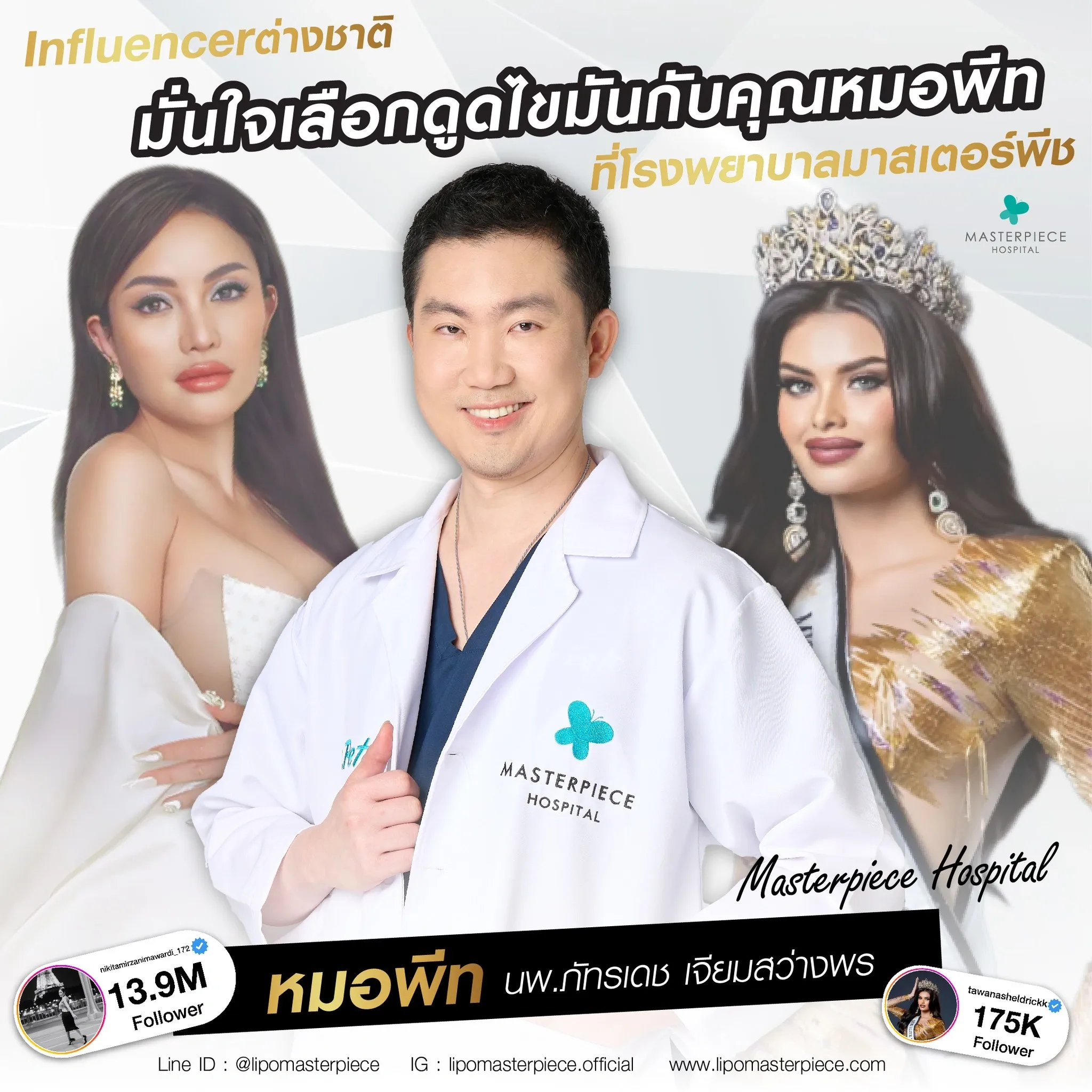 ปรึกษาและดูดไขมันที่โรงพยาบาลมาสเตอร์พีช เพื่อรูปร่างกระชับ สวยงาม ด้วยเทคโนโลยีทันสมัยและทีมแพทย์เฉพาะทางด้านการดูดไขมัน พร้อมให้คำแนะนำและดูแลทุกขั้นตอน จองคิวปรึกษาฟรีวันนี้ ! โทร 02-105-4370 หรือเยี่ยมชมเว็บไซต์ของเราเพื่อดูข้อมูลเพิ่มเติมที่ www.masterpiecehospital.com